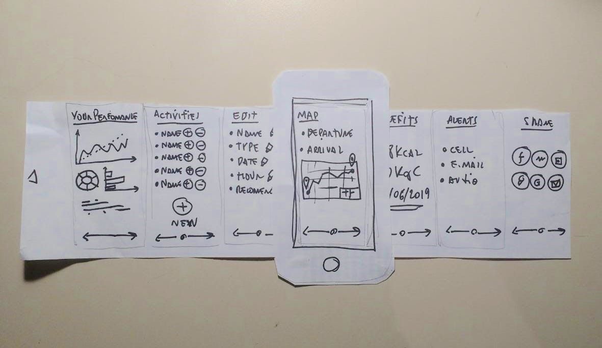 End your Behance case study with your final design. For the Design Thinking Build Your Portfolio project, that’s a paper prototype showcasing key interactions of your fitness smartphone app.
