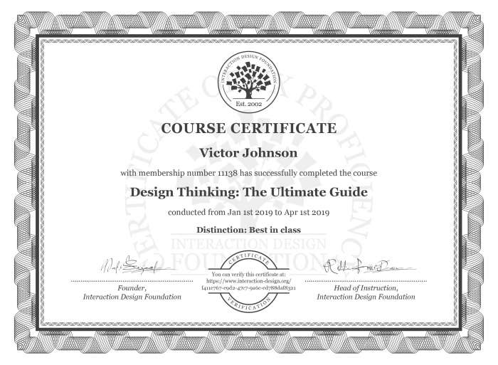 I worked on this project as part of my coursework in the Design Thinking course offered by the Interaction Design Foundation. At the end of my course, I earned the Course Certificate below and also gained the “best in class” distinction!