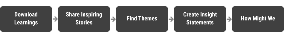 Design Consultancy and expert design thinkers IDEO have a multitude of suggestions for how to workshop user research results. Here, we will show you a workshop process consisting of five different exercises or steps, which we recommend as a great way to move from raw insights to preliminary concept ideas (you can find even more exercises at www.designkit.org).