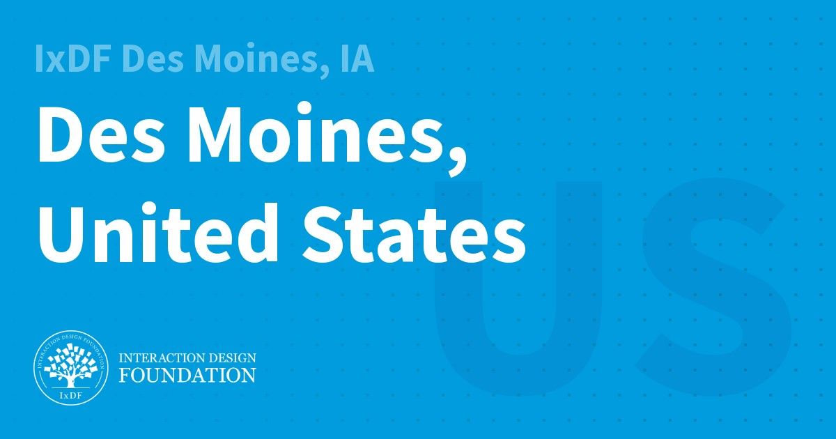 Welcome to IxDF Des Moines (Iowa). We are a growing group of people who are interested in UX, Interaction Design, and Product Design. This group was recently created to combine smaller groups and serve all of Iowa. There's a lot of opportunity for growth and leadership here, so this is the place to be if you like to get involved! We are still in the process of establishing regular meetings. All interested members in Iowa, please join our group here on IxDF and/or facebook to help get the ball rolling. We hope to meet, share ideas and discuss and learn from each other. Let’s start our network and have fun together.