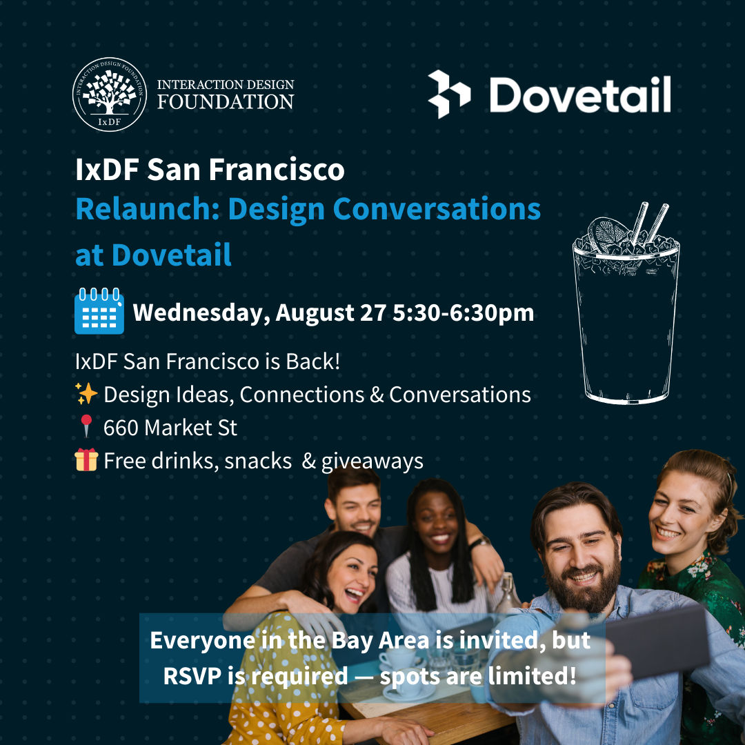 Join us for the first official in-person IxDF SF meetup of the season — hosted at Dovetail's downtown space with drinks, snacks, giveaways, and great company.