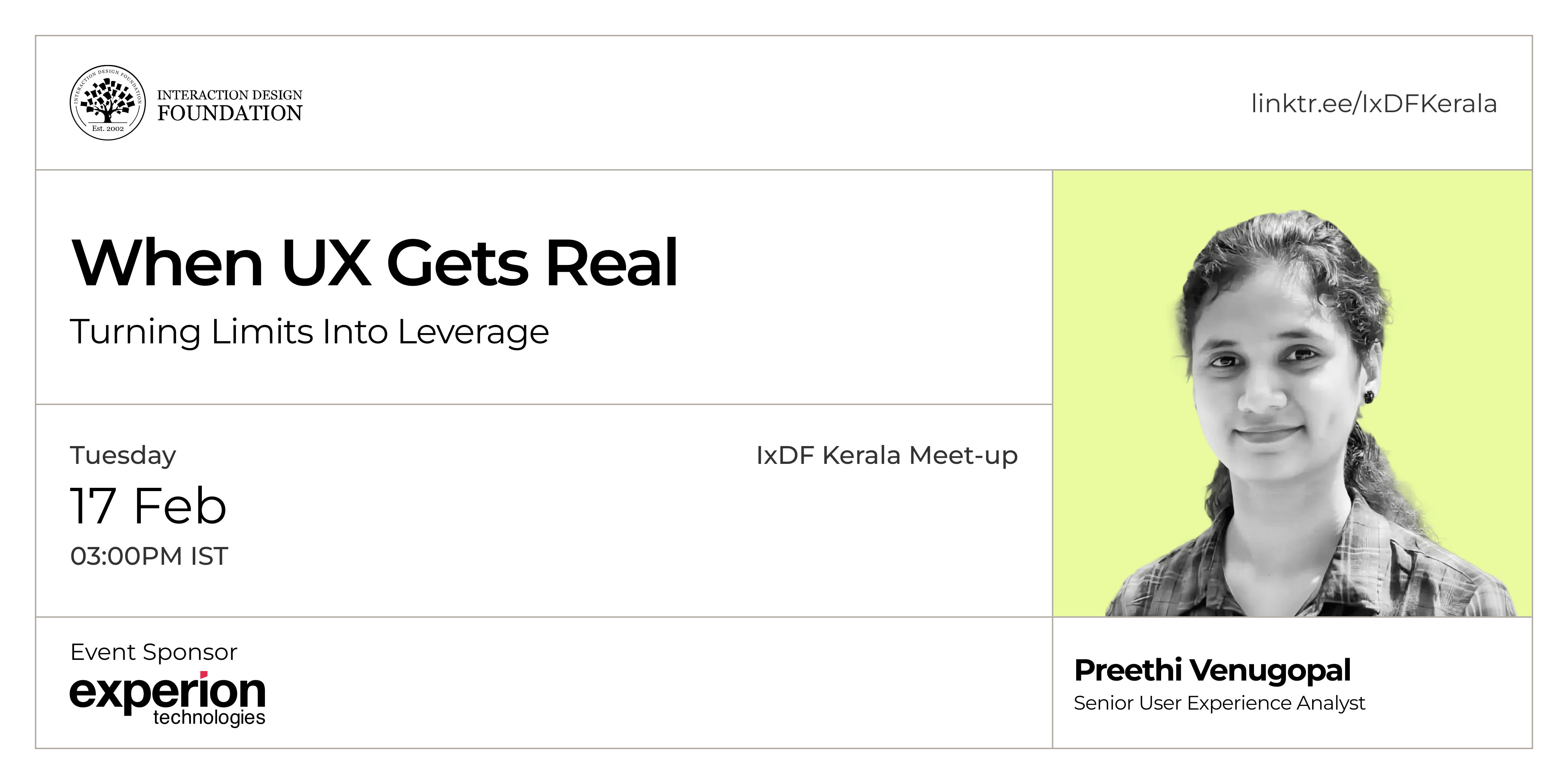 Hi IxDF Kerala, let’s meet online and discuss UX! In our video call, let’s get to know each other and share UX problems we’re facing and discuss how we can solve them. Save the date, grab your laptop (or phone!), and let’s see each other online!