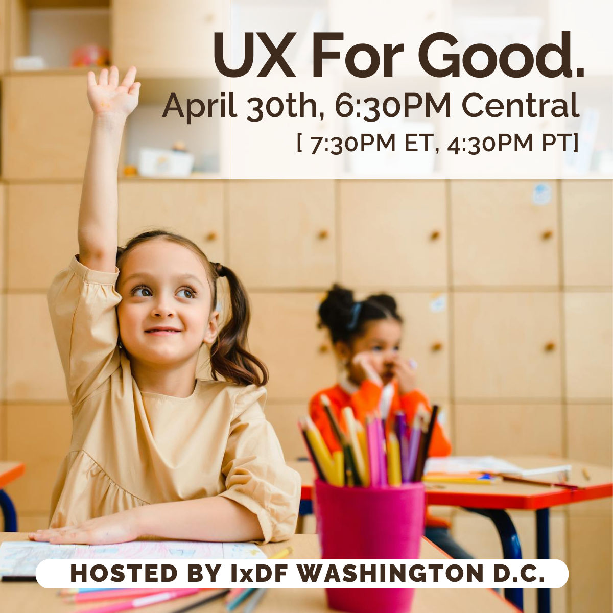 Whether you're a seasoned UX designer or just starting out in the field, this event is perfect for anyone passionate about using their skills for good. Don't miss out on this chance to learn, connect, and make a difference!