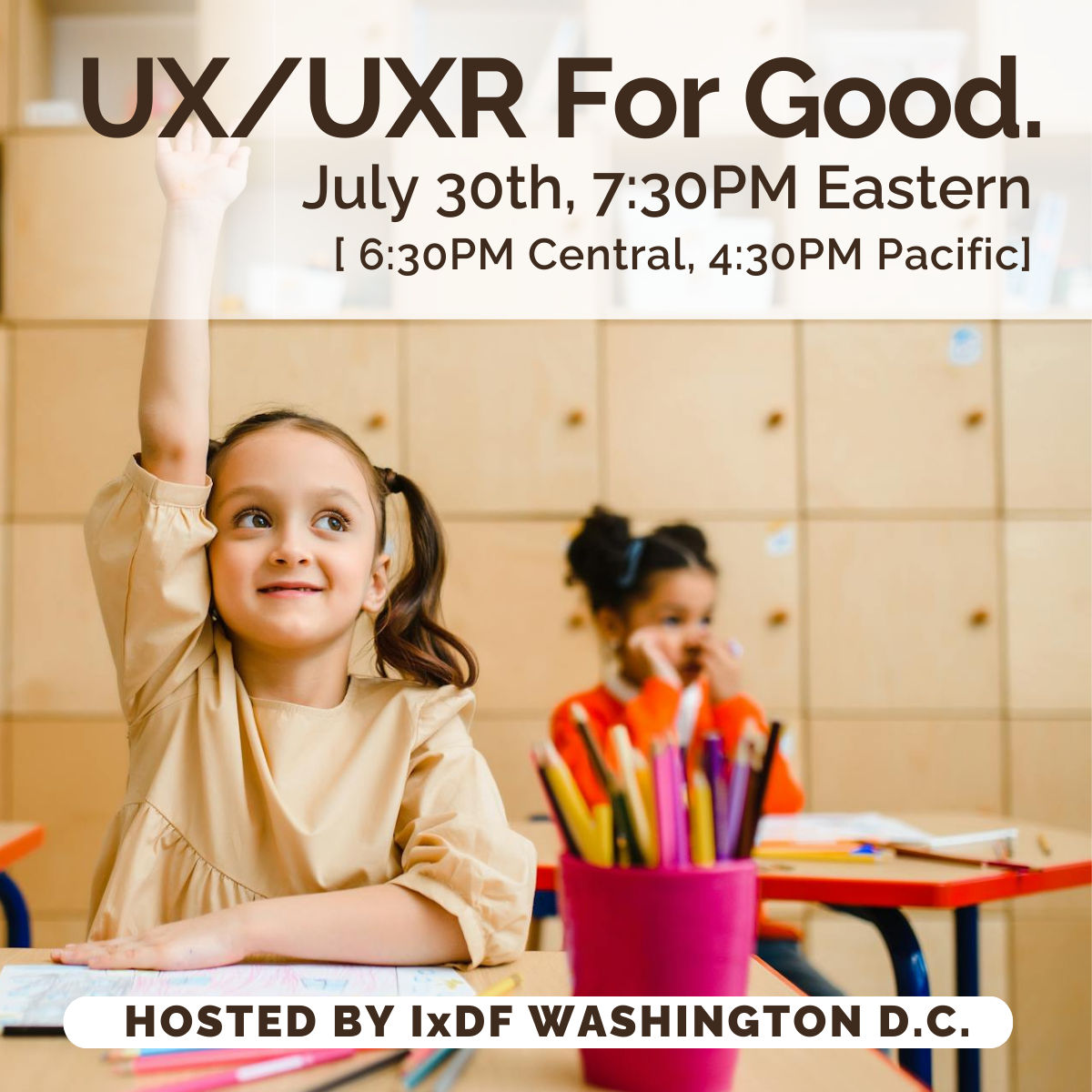 I'm excited to invite you to our second UX For Good session on Wednesday, July 30, 7:30 Eastern