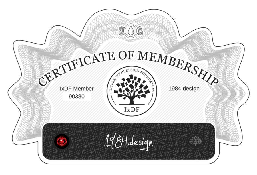 The Membership Certificate below verifies that 1984.design is a member of Interaction Design Foundation.