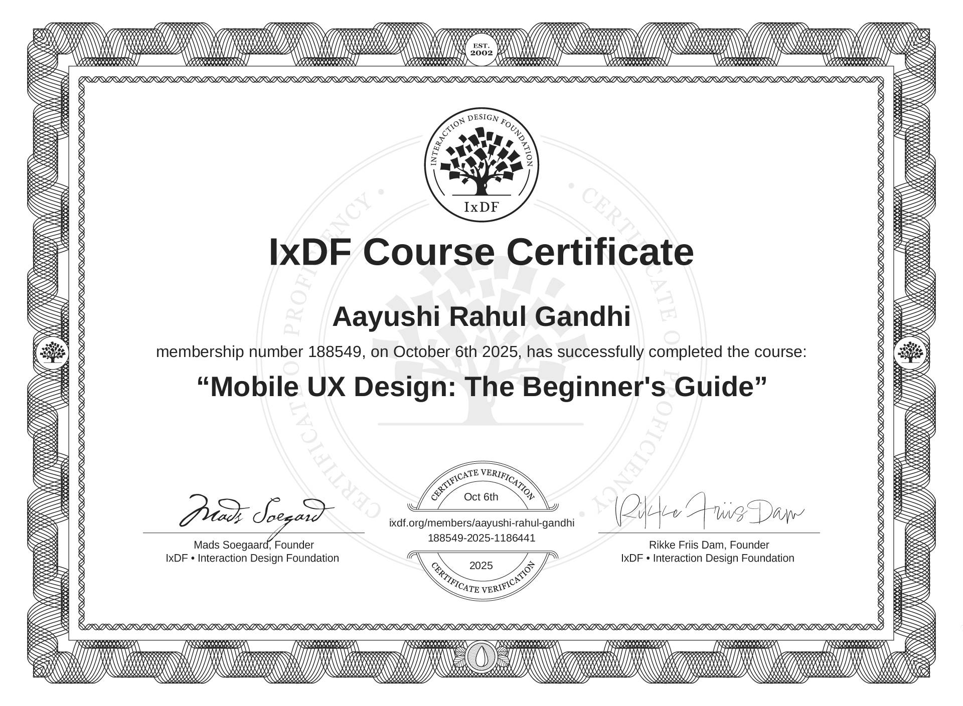 Aayushi Rahul Gandhi's IxDF Course Certificate: Mobile UX Design: The Beginner's Guide