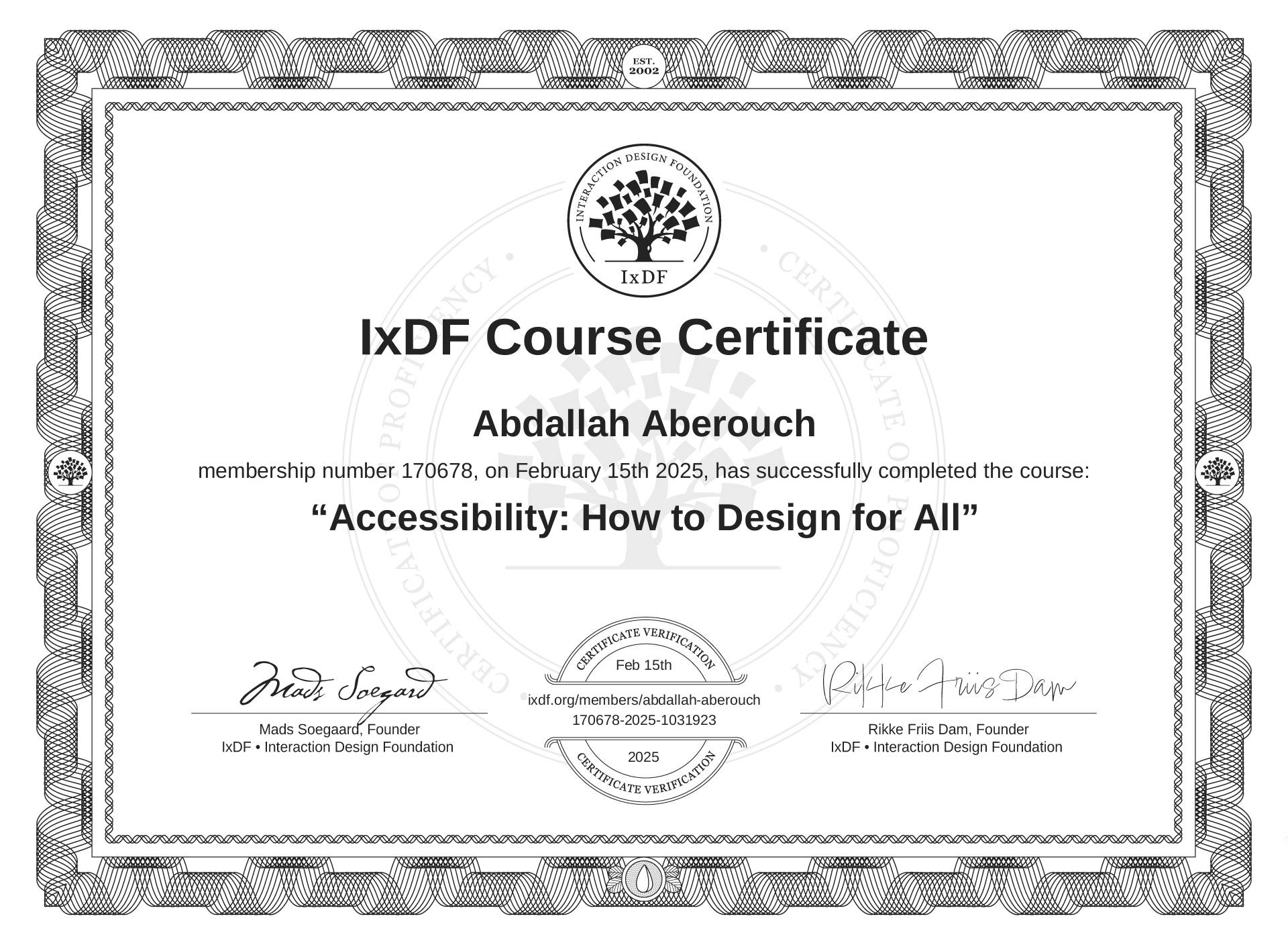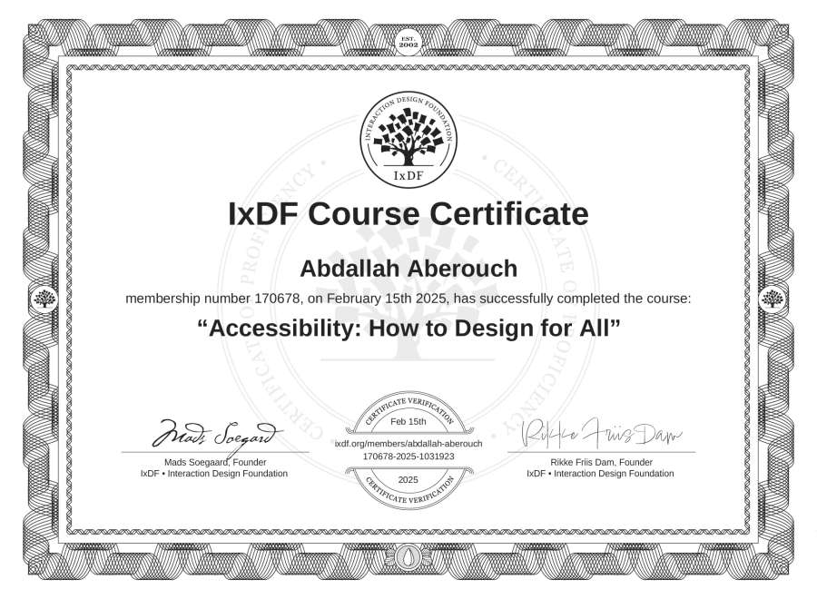 Abdallah Aberouch's IxDF Course Certificate: Accessibility: How to Design for All