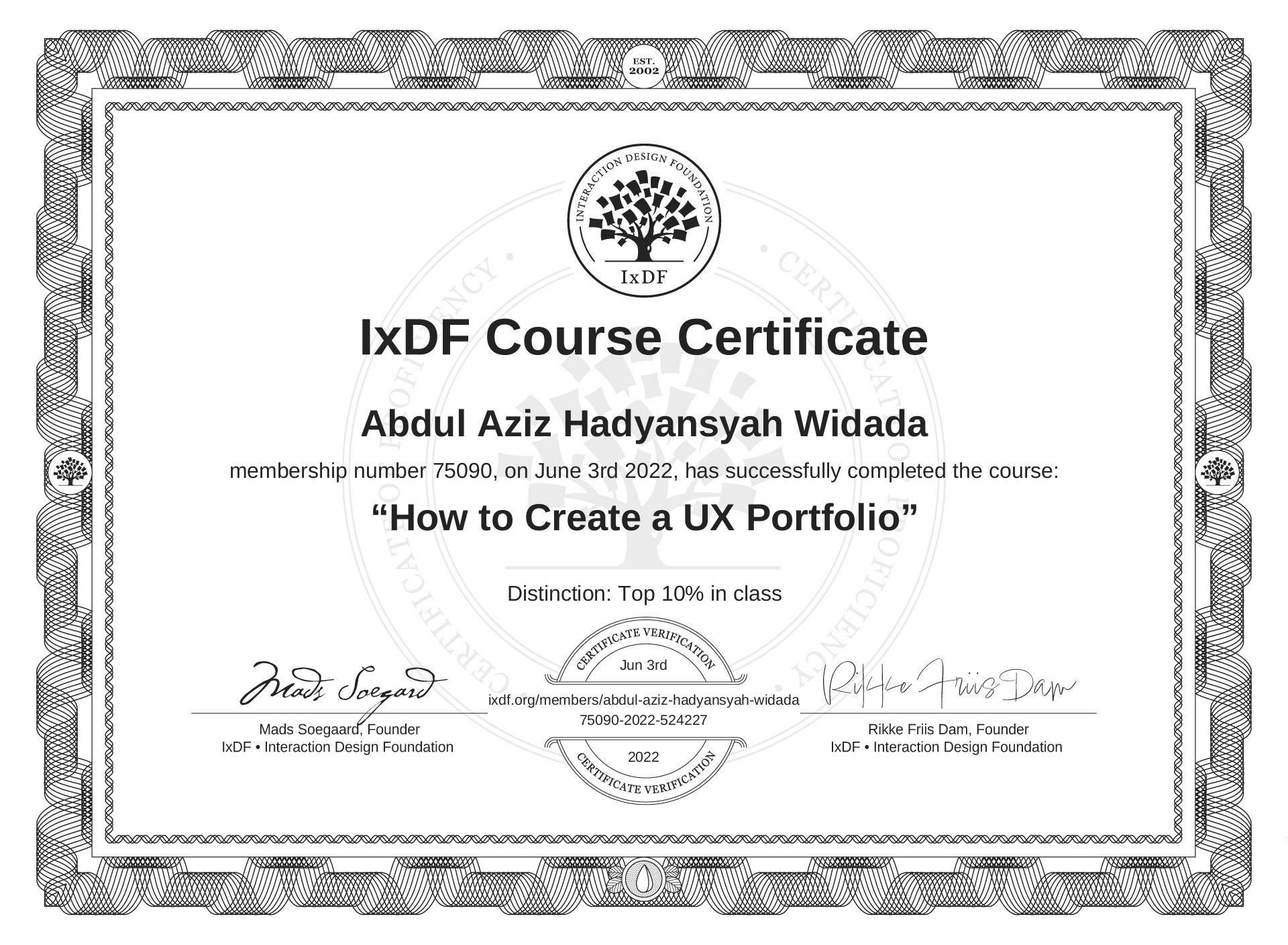Abdul Aziz Hadyansyah Widada's IxDF Course Certificate: How to Create a UX Portfolio