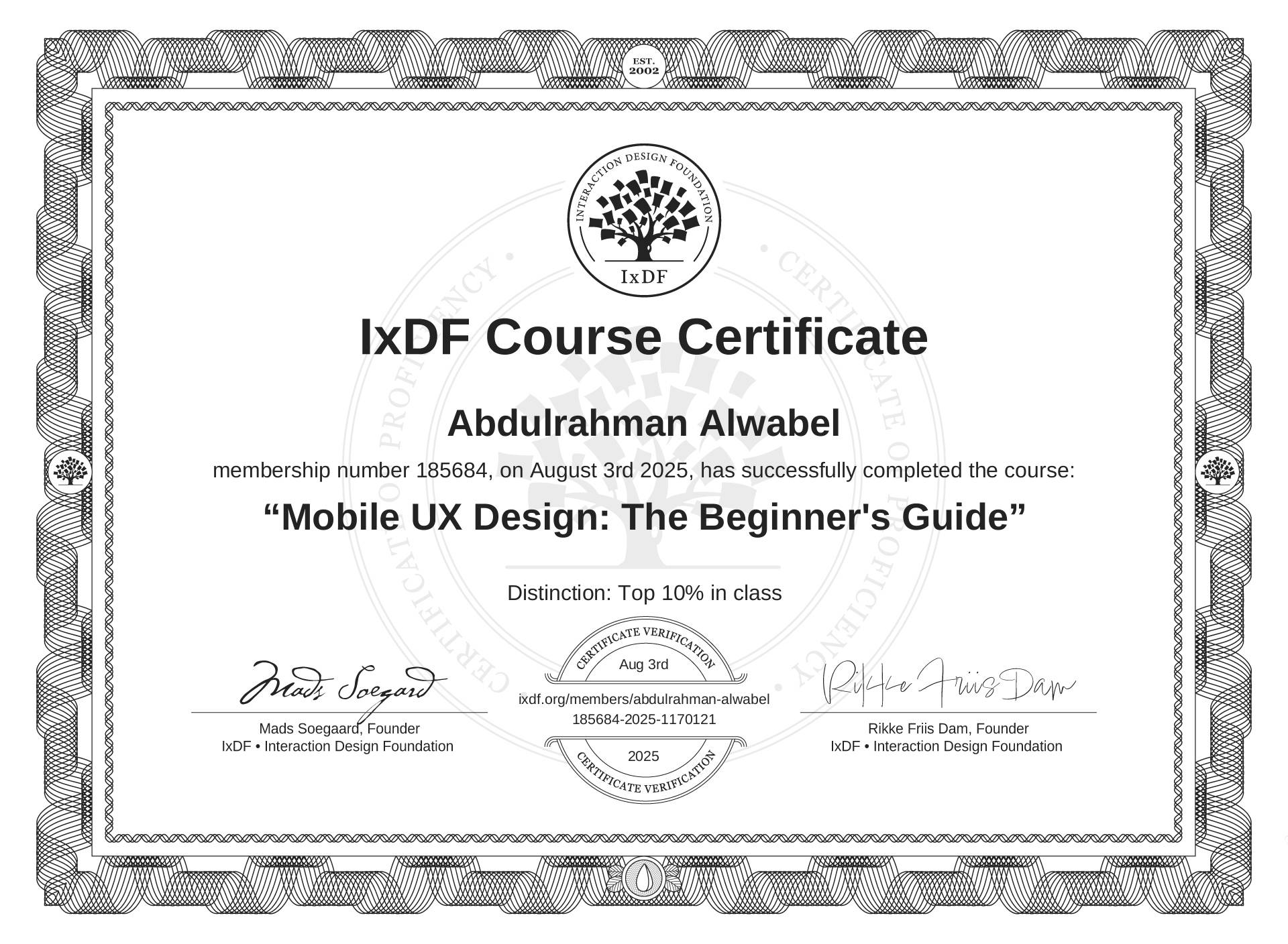 Abdulrahman Alwabel's IxDF Course Certificate: Mobile UX Design: The Beginner's Guide