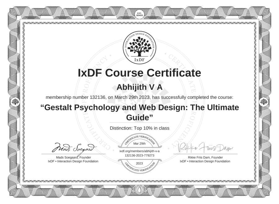 Abhijith V A's IxDF Course Certificate: Gestalt Psychology and Web Design: The Ultimate Guide