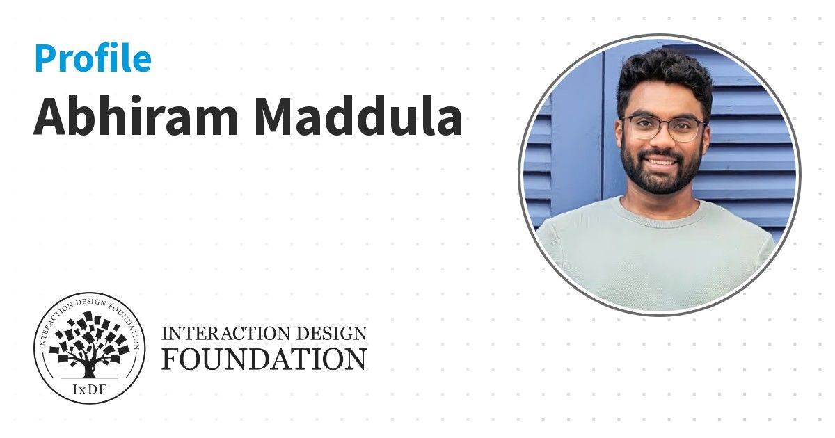 IxDF Course Certificates are awarded to Abhiram Maddula in formal recognition of their coursework surpassing the rigorous benchmarks of exceptional performance established by the IxDF Educational Codex.