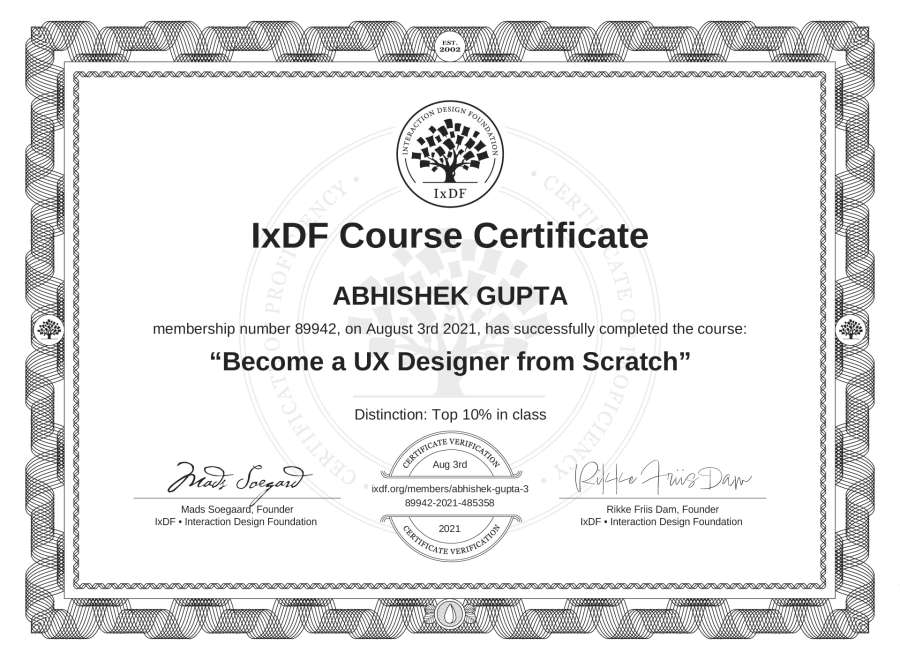 ABHISHEK GUPTA's IxDF Course Certificate: Become a UX Designer from Scratch