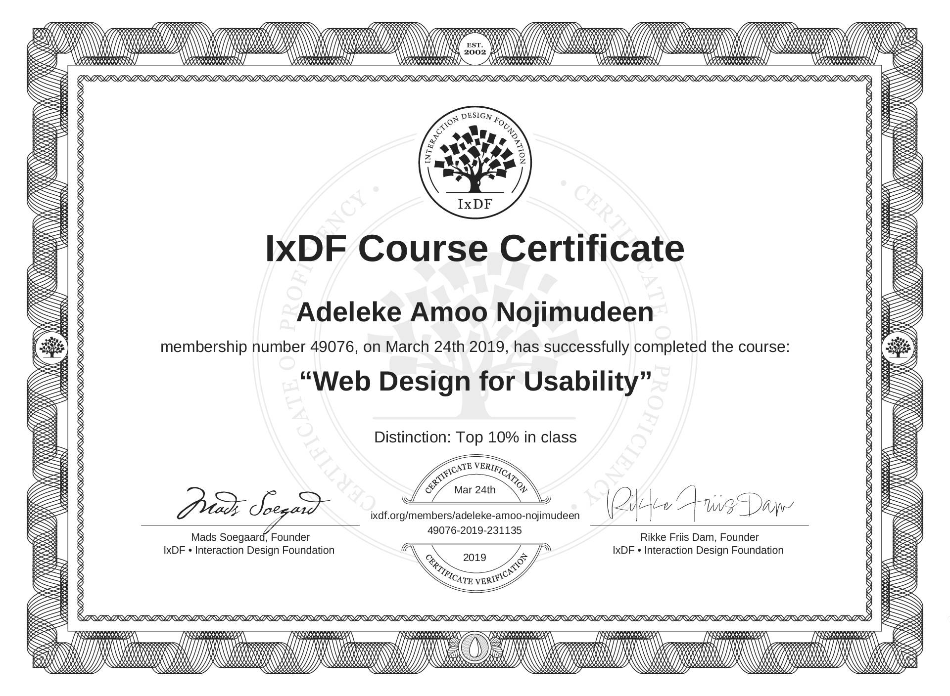 Adeleke Amoo Nojimudeen's IxDF Course Certificate: Web Design for Usability