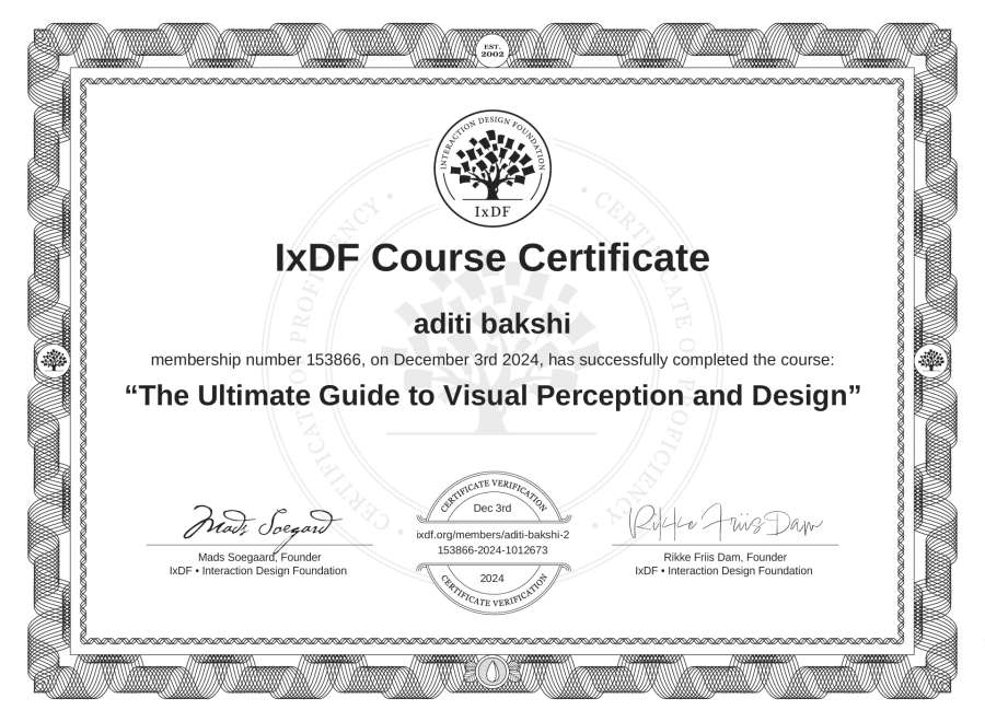 aditi bakshi's IxDF Course Certificate: The Ultimate Guide to Visual Perception and Design