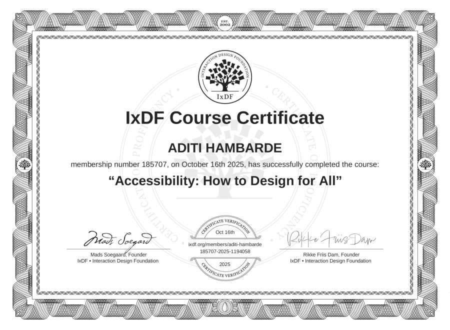 ADITI HAMBARDE's IxDF Course Certificate: Accessibility: How to Design for All