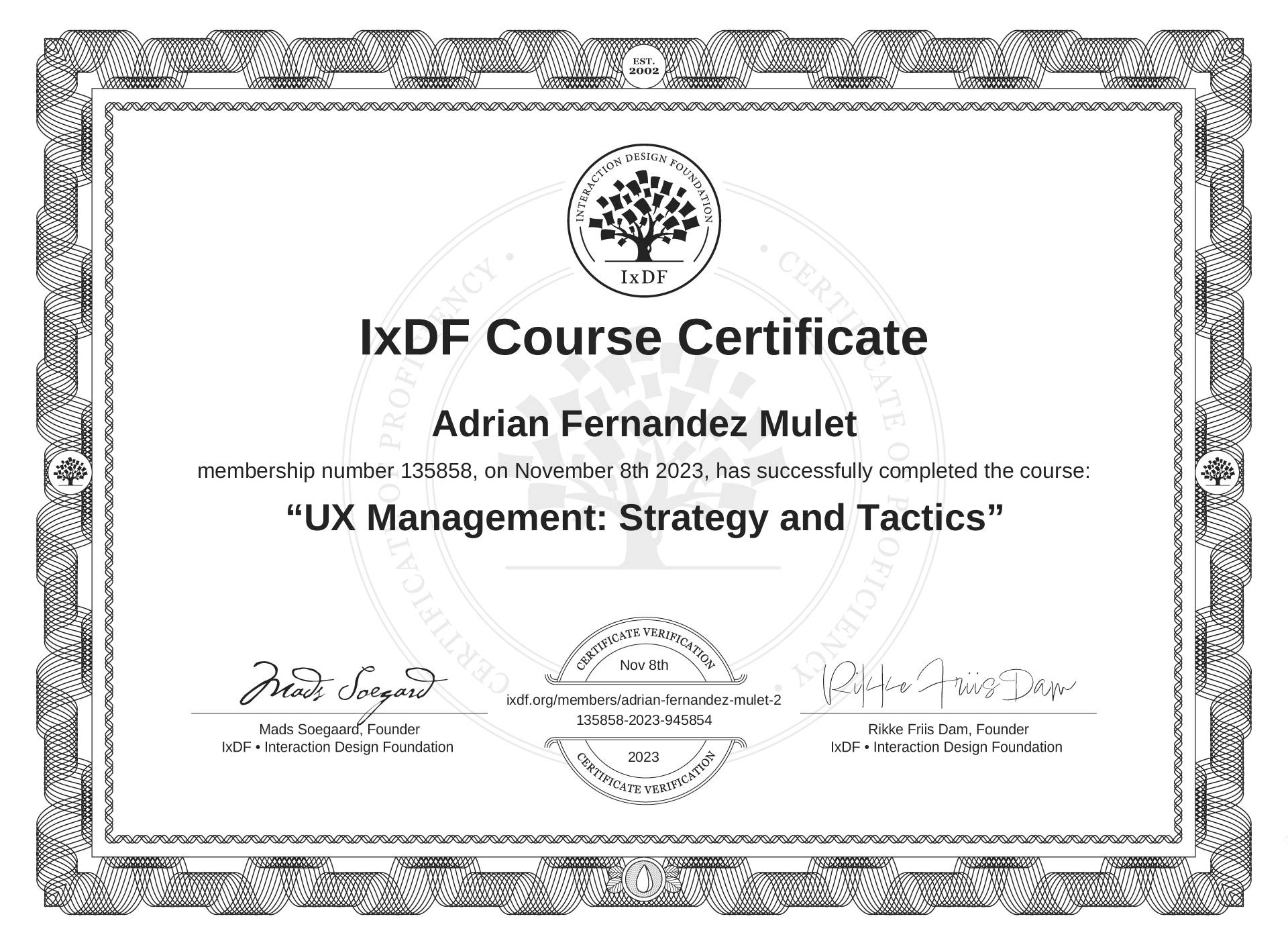 Adrián Fernández Mulet's IxDF Course Certificate: UX Management: Strategy and Tactics