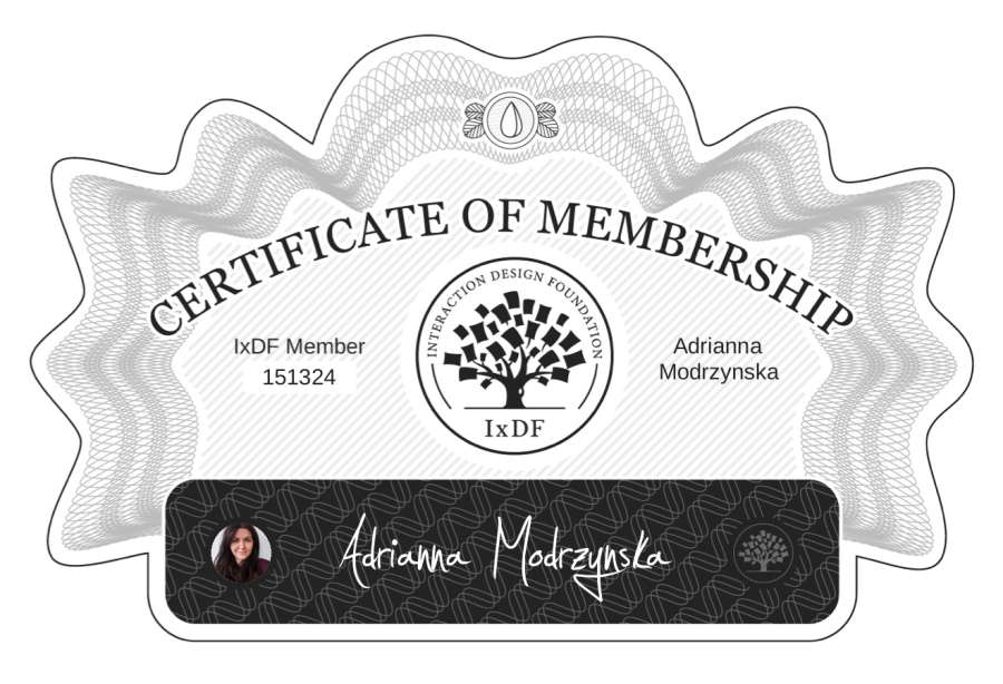 Page URL: https://www.interaction-design.org/members/adrianna-modrzynska/certificate/membership/mc_T4kRRlGnl