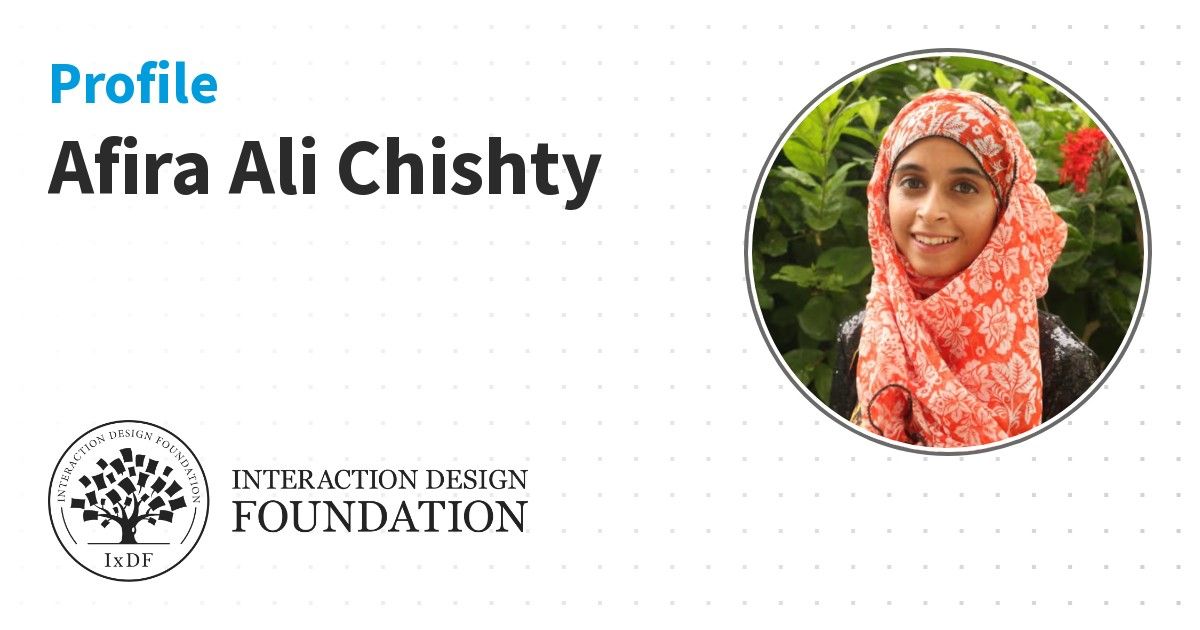 Distinctions are conferred upon Afira Ali Chishty in formal recognition of their notable achievements and contributions, as stipulated by the IxDF Educational Codex.