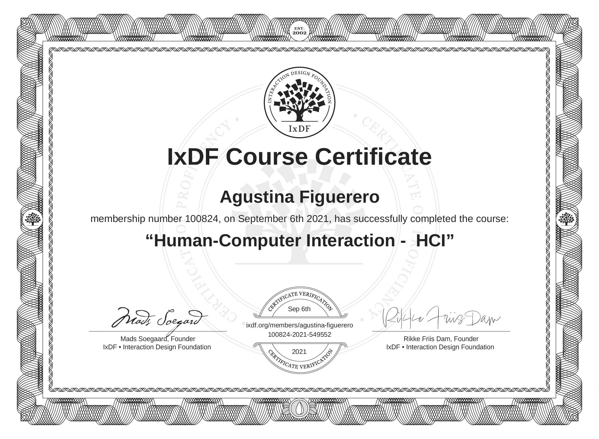 Agustina Figuerero's IxDF Course Certificate: Human-Computer Interaction - HCI