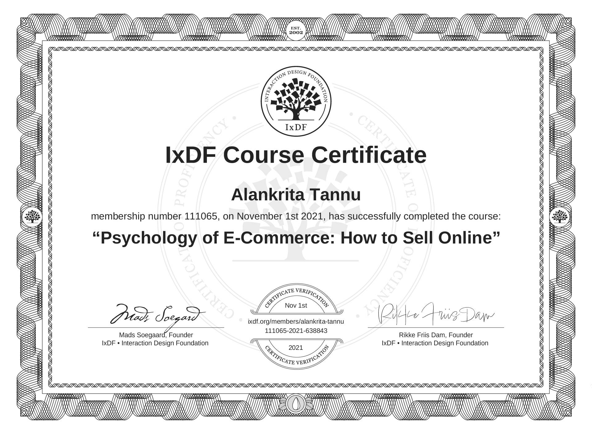 Alankrita Tannu's IxDF Course Certificate: Psychology of E-Commerce: How to Sell Online