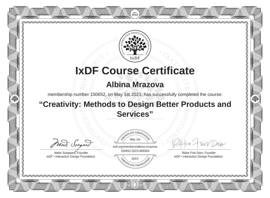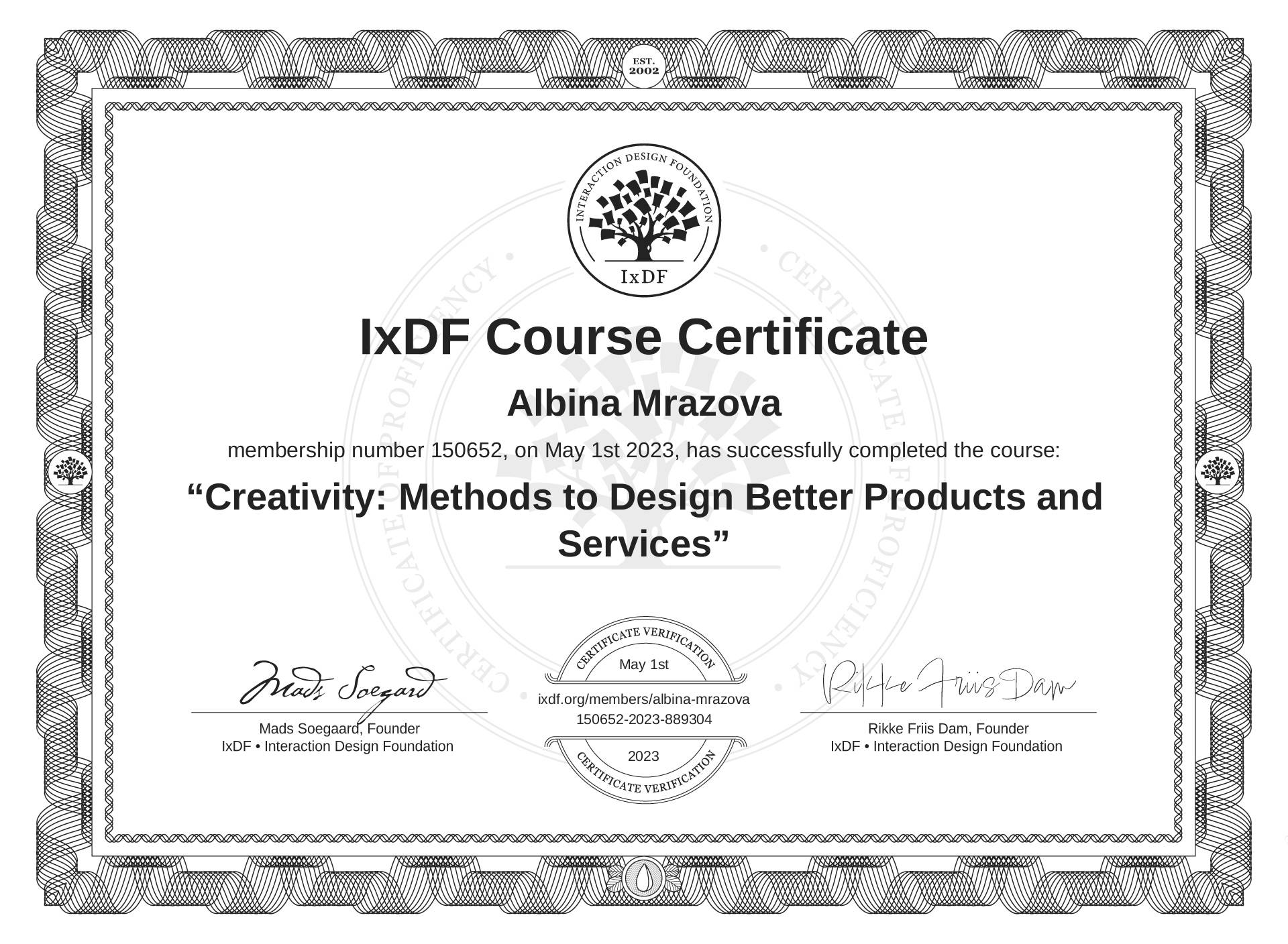 Albina Mrázová's IxDF Course Certificate: Creativity: Methods to Design Better Products and Services