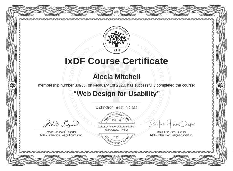 Alecia Mitchell's IxDF Course Certificate: Web Design for Usability