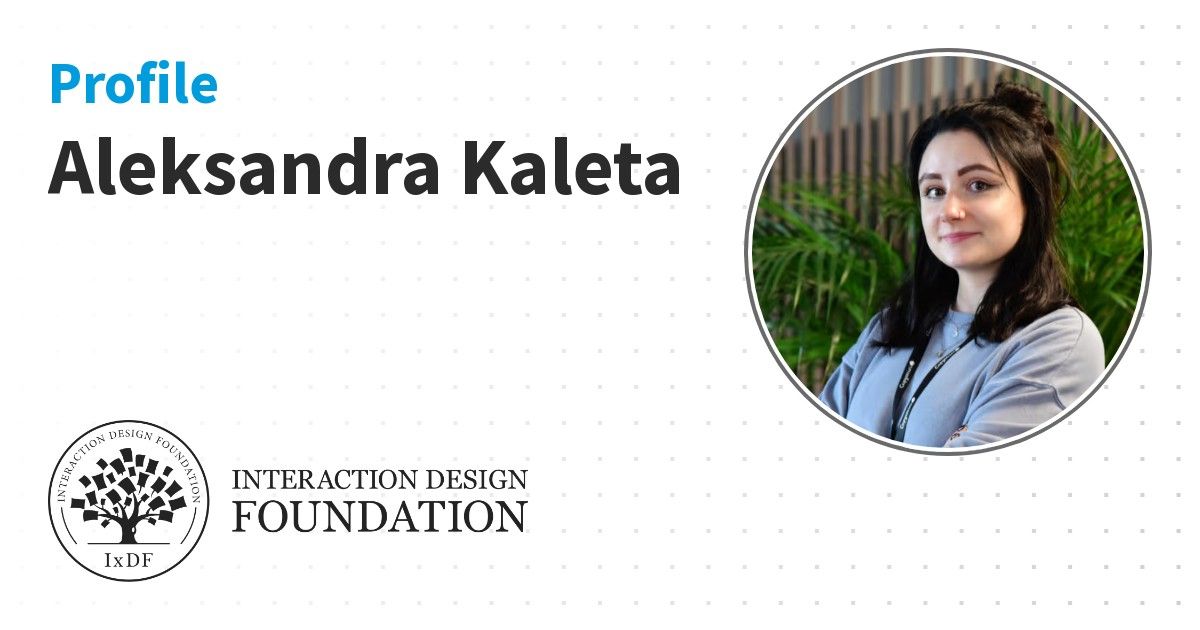 IxDF Course Certificates are awarded to Aleksandra Kaleta in formal recognition of their coursework surpassing the rigorous benchmarks of exceptional performance established by the IxDF Educational Codex.
