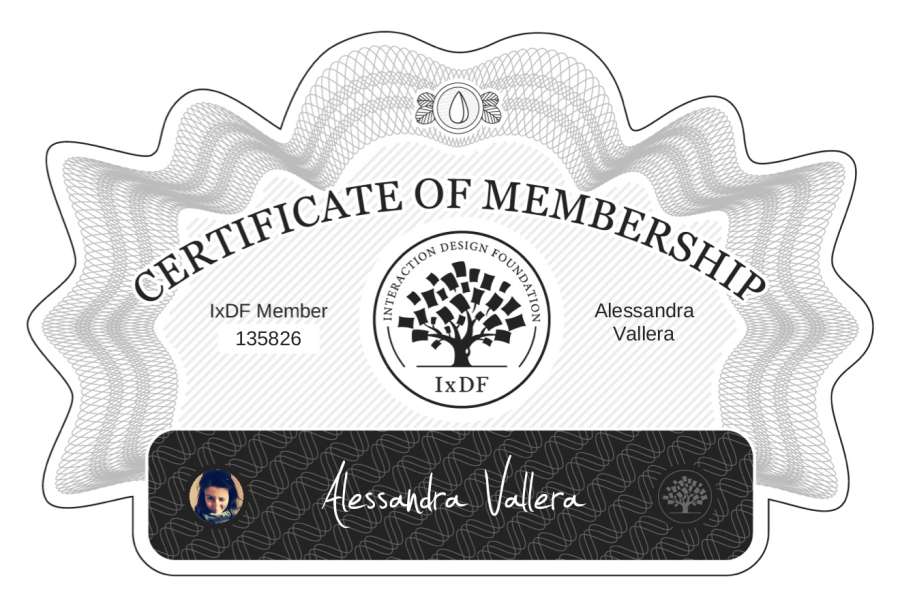 Alessandra Vallera: IxDF Membership Certificate