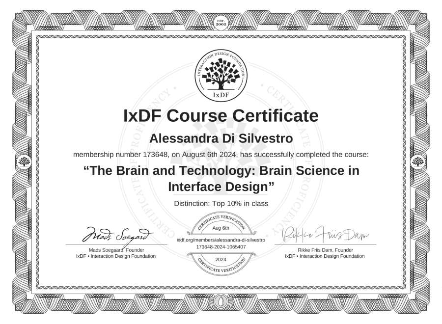 Alessandra Di Silvestro's IxDF Course Certificate: The Brain and Technology: Brain Science in Interface Design