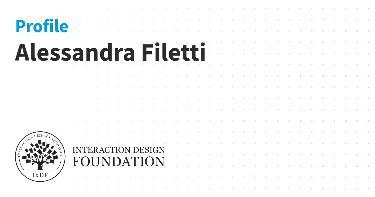 IxDF Course Certificates are awarded to Alessandra Filetti in formal recognition of their coursework surpassing the rigorous benchmarks of exceptional performance established by the IxDF Educational Codex.