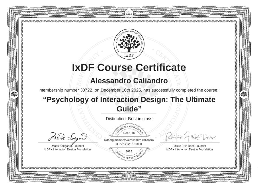 Alessandro Caliandro's IxDF Course Certificate: Psychology of Interaction Design: The Ultimate Guide