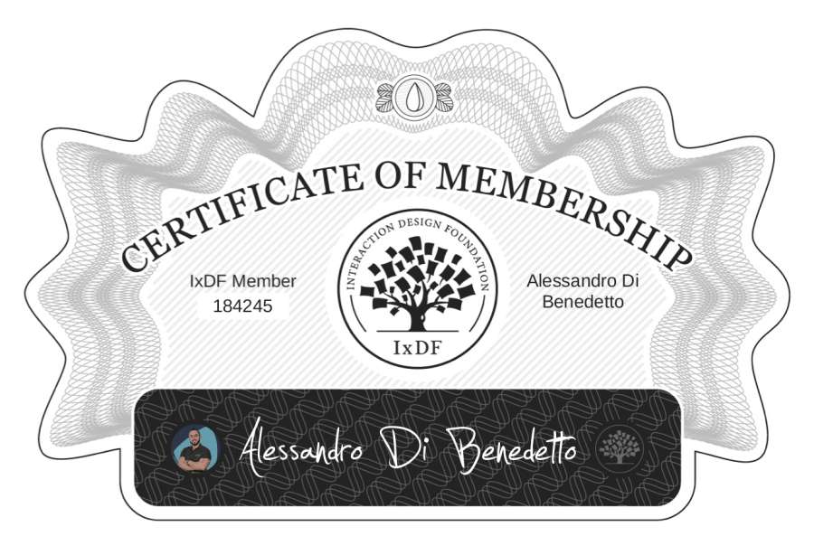 Alessandro Di Benedetto: IxDF Membership Certificate