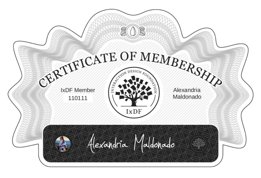 Alexandria Maldonado: IxDF Membership Certificate