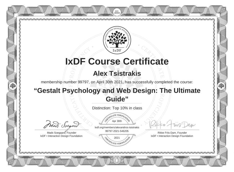 Alex Tsistrakis's IxDF Course Certificate: Gestalt Psychology and Web Design: The Ultimate Guide