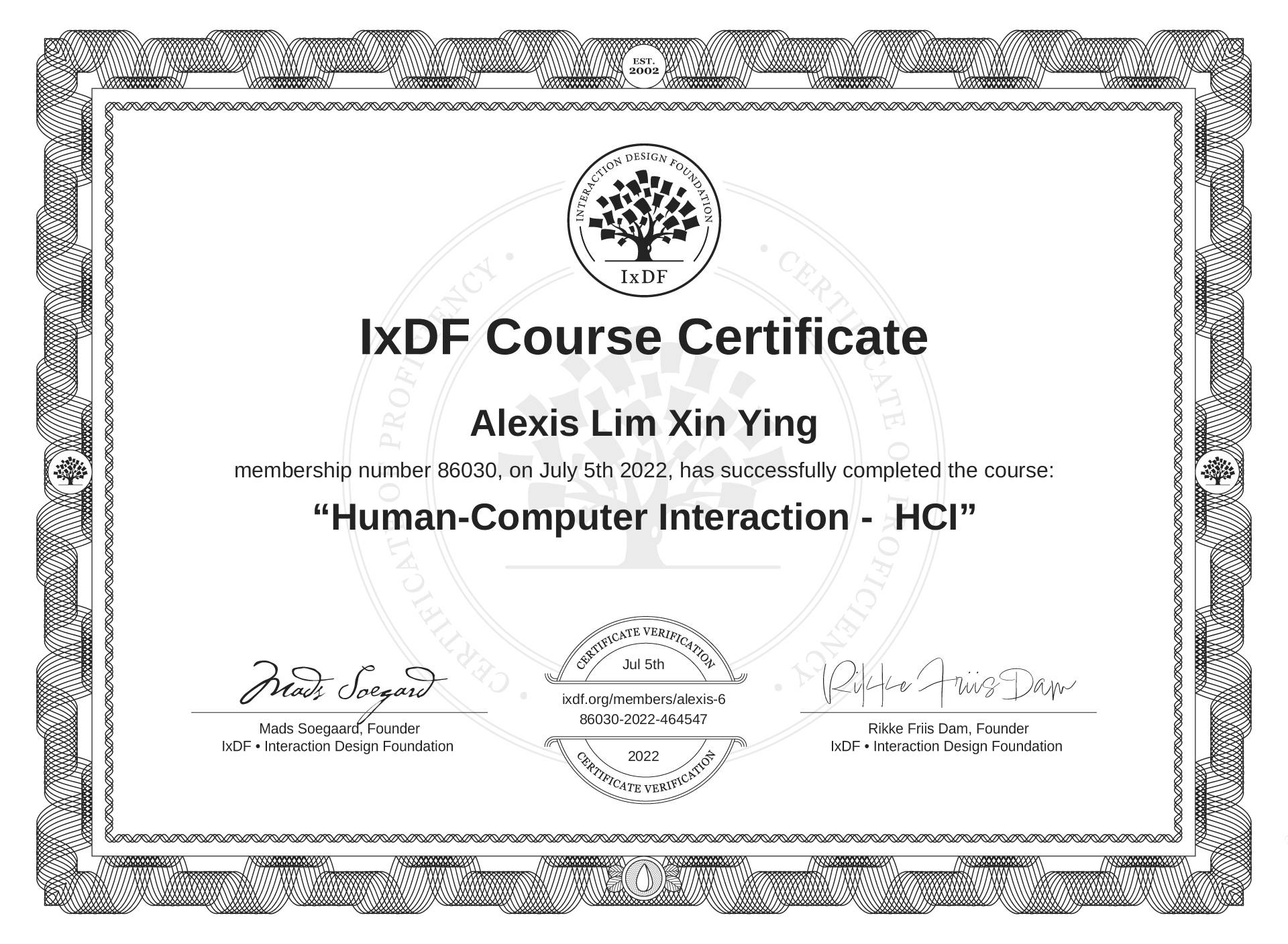 Alexis Lim Xin Ying's IxDF Course Certificate: Human-Computer Interaction - HCI