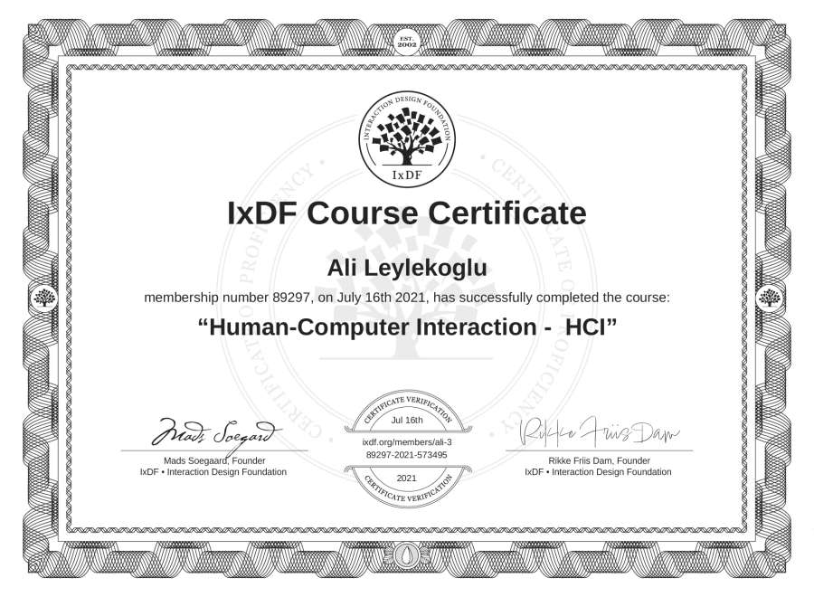 Ali Leylekoğlu's IxDF Course Certificate: Human-Computer Interaction - HCI