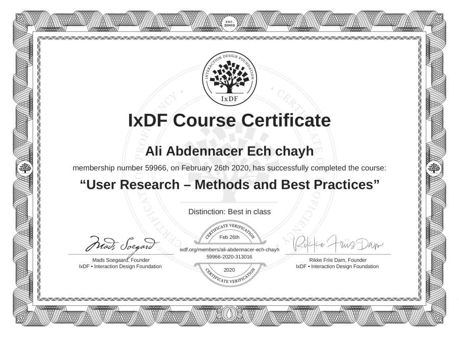 Ali Abdennacer Ech chayh's IxDF Course Certificate: User Research – Methods and Best Practices