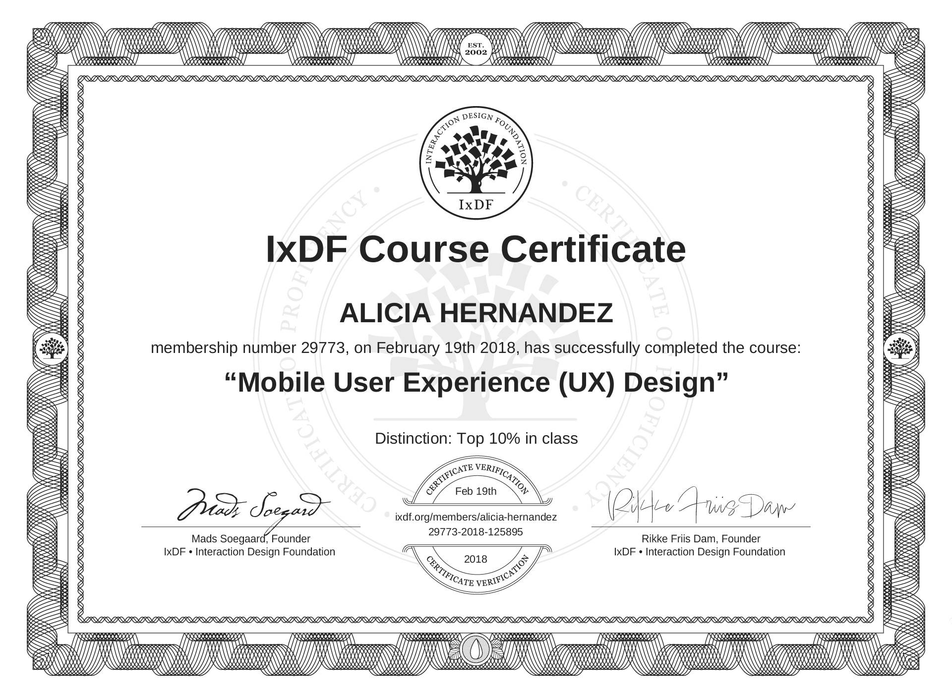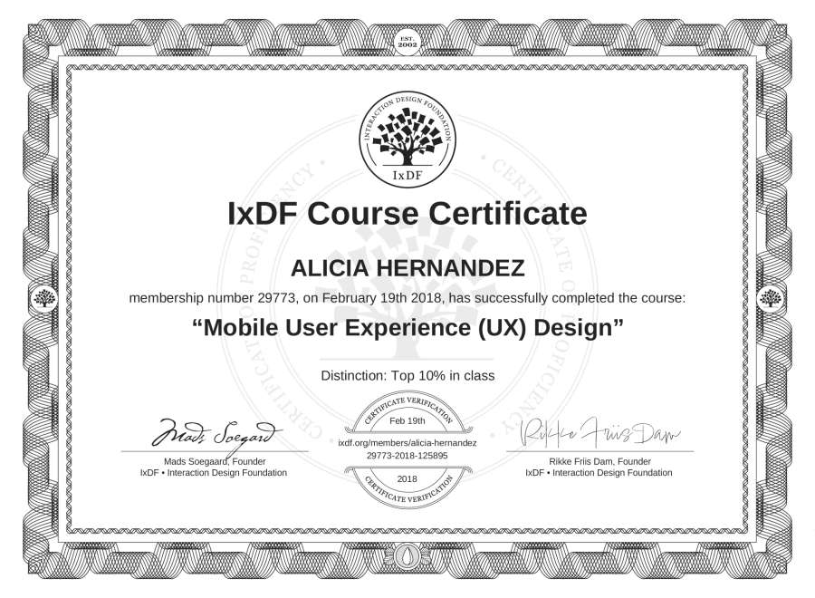 ALICIA HERNANDEZ's IxDF Course Certificate: Mobile User Experience (UX) Design
