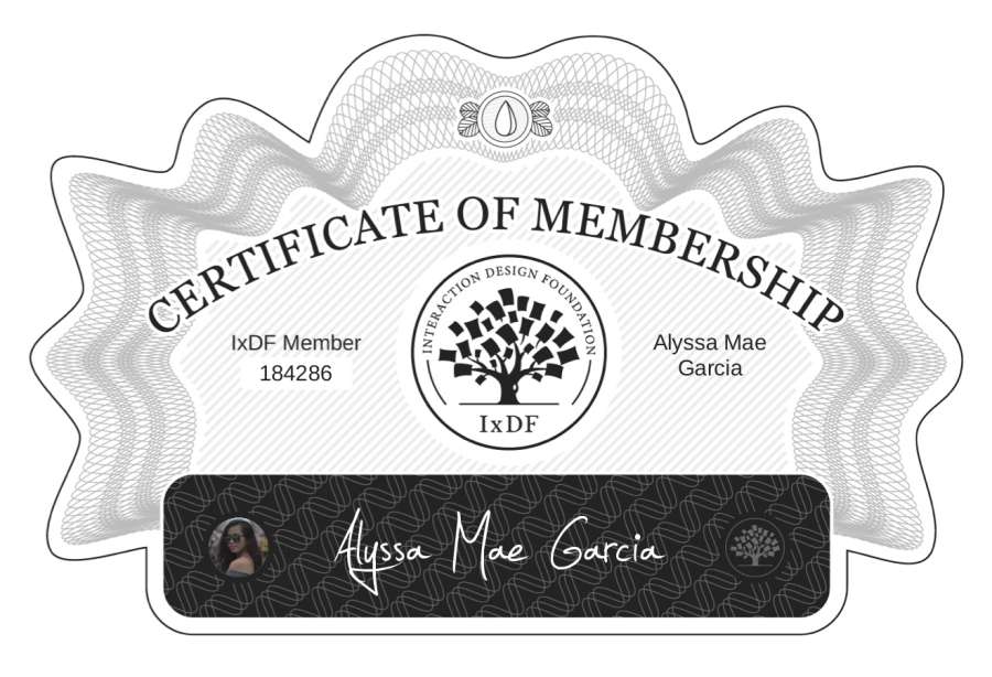 Page URL: https://www.interaction-design.org/members/alyssa-mae-garcia/certificate/membership/mc_VxCBmsmt1