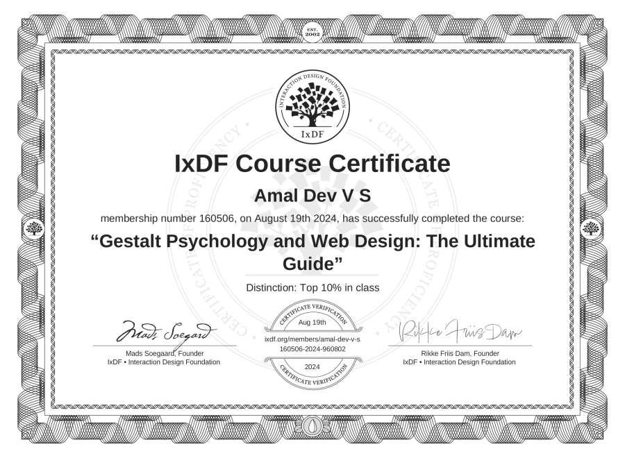 Amal Dev V S's IxDF Course Certificate: Gestalt Psychology and Web Design: The Ultimate Guide