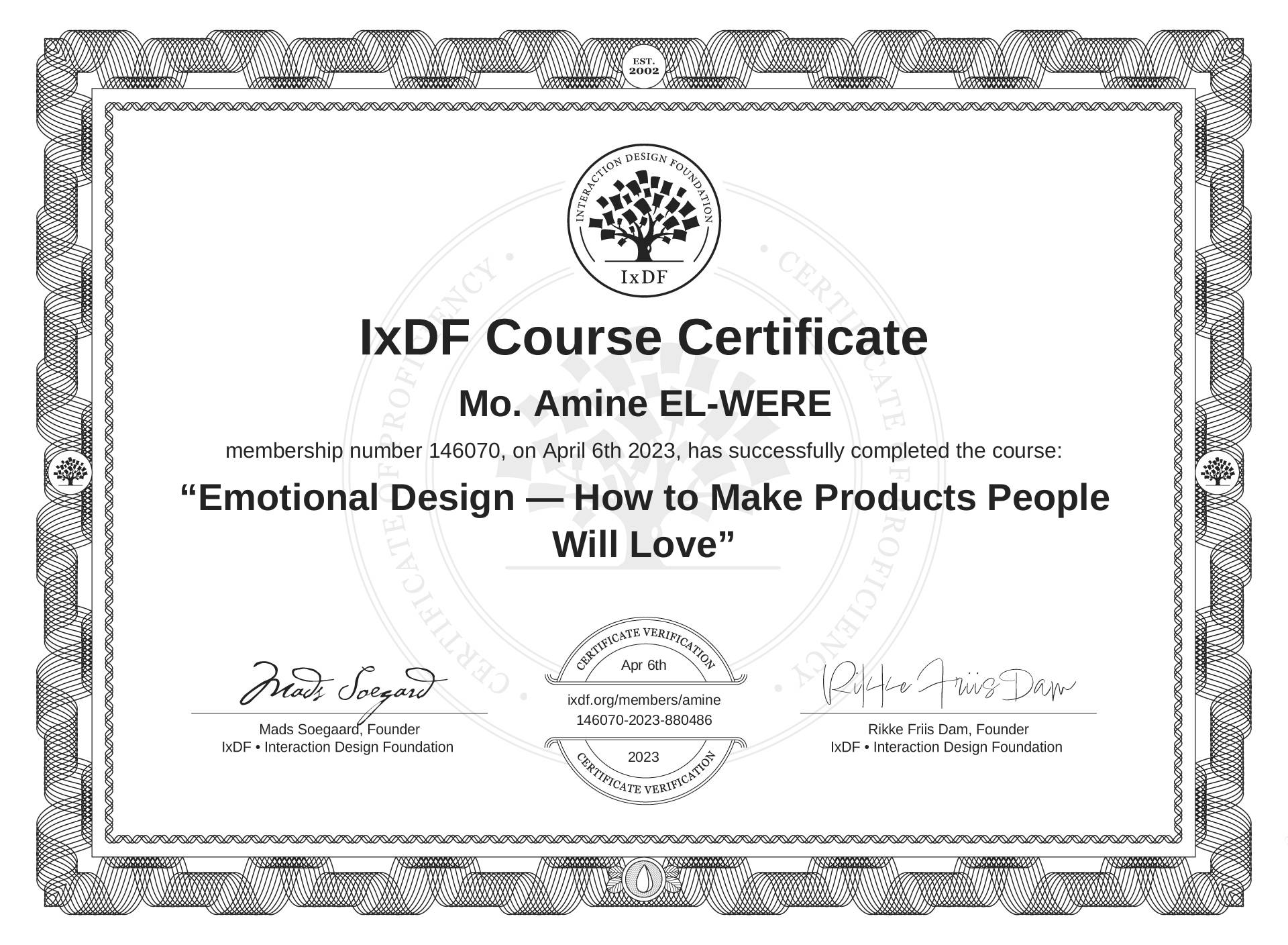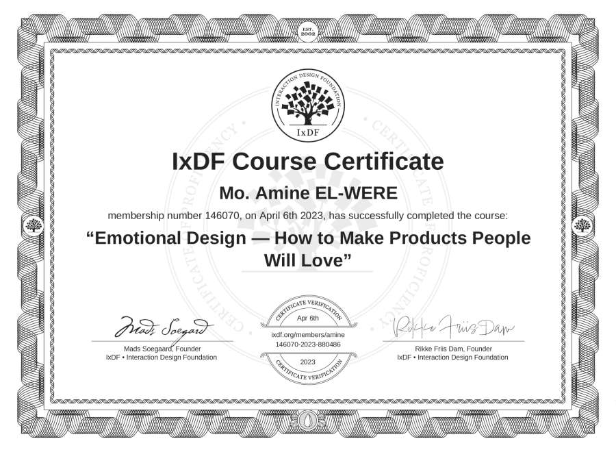Mo. Amine EL-WERE's IxDF Course Certificate: Emotional Design — How to Make Products People Will Love