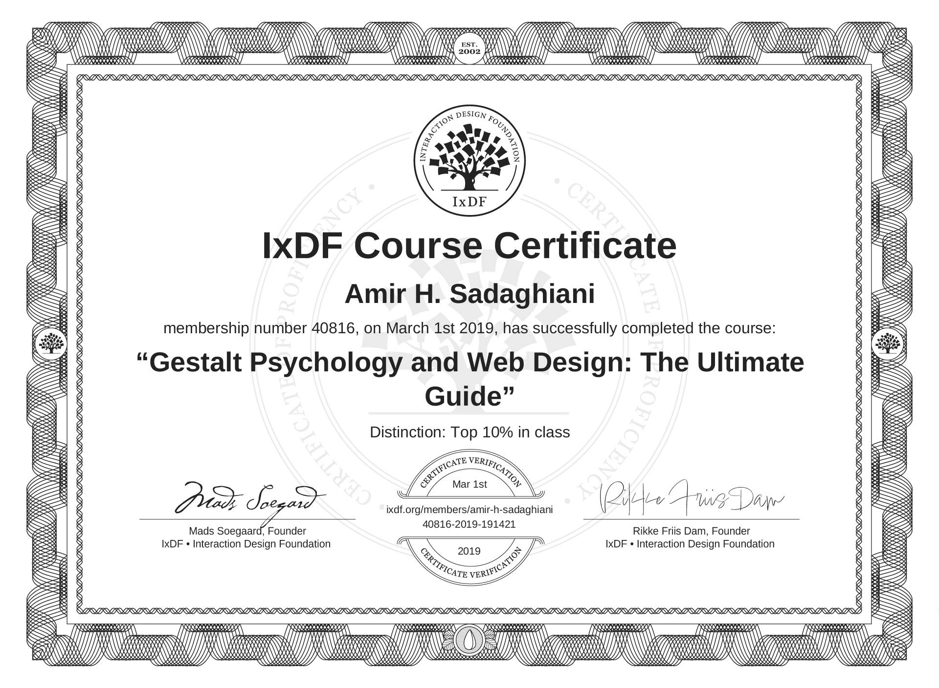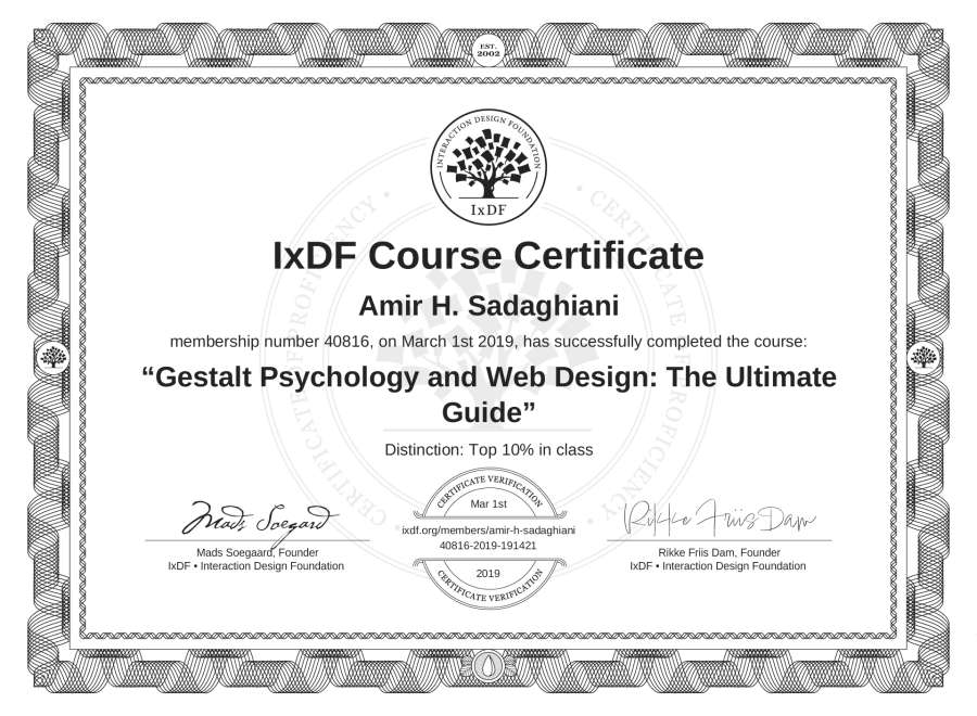 Amir H. Sadaghiani's IxDF Course Certificate: Gestalt Psychology and Web Design: The Ultimate Guide