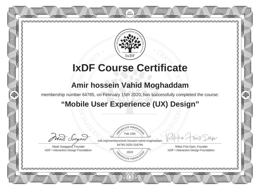 Amir hossein Vahid Moghaddam's IxDF Course Certificate: Mobile User Experience (UX) Design