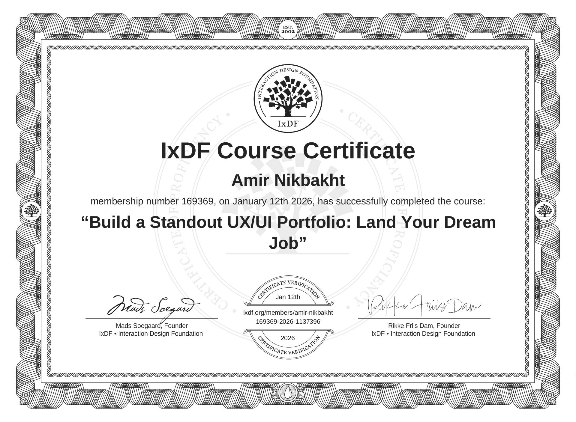 Amir Nikbakht's IxDF Course Certificate: Build a Standout UX/UI Portfolio: Land Your Dream Job