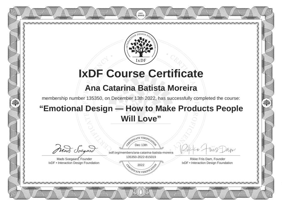Ana Catarina Batista Moreira's IxDF Course Certificate: Emotional Design — How to Make Products People Will Love