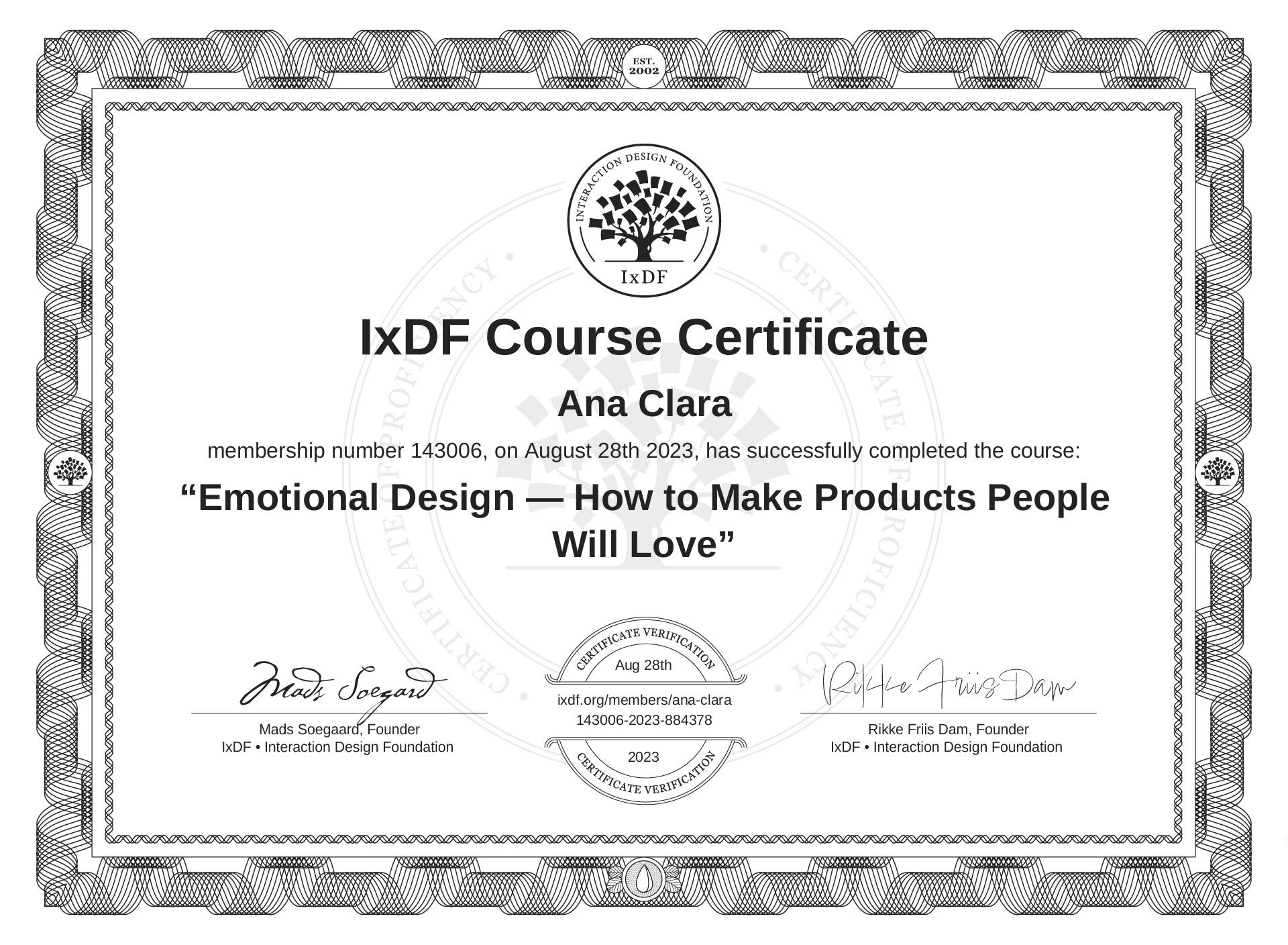 Ana Clara's IxDF Course Certificate: Emotional Design — How to Make Products People Will Love
