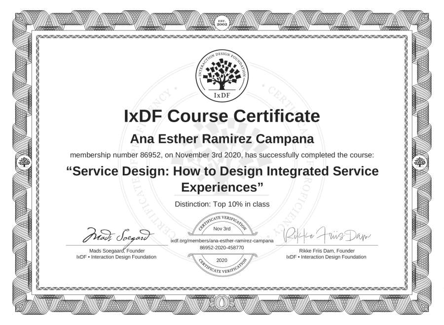 Ana Esther Ramírez Campaña's IxDF Course Certificate: Service Design: How to Design Integrated Service Experiences