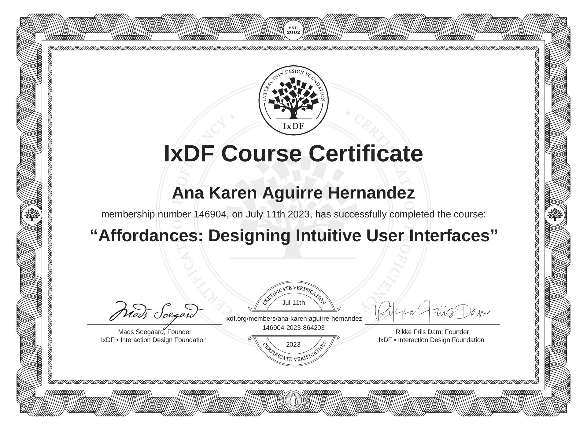Ana Karen Aguirre Hernandez's IxDF Course Certificate: Affordances: Designing Intuitive User Interfaces