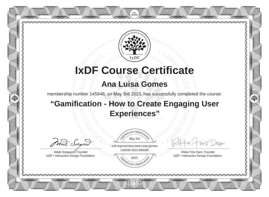 Ana Luísa Gomes's IxDF Course Certificate: Gamification - How to Create Engaging User Experiences