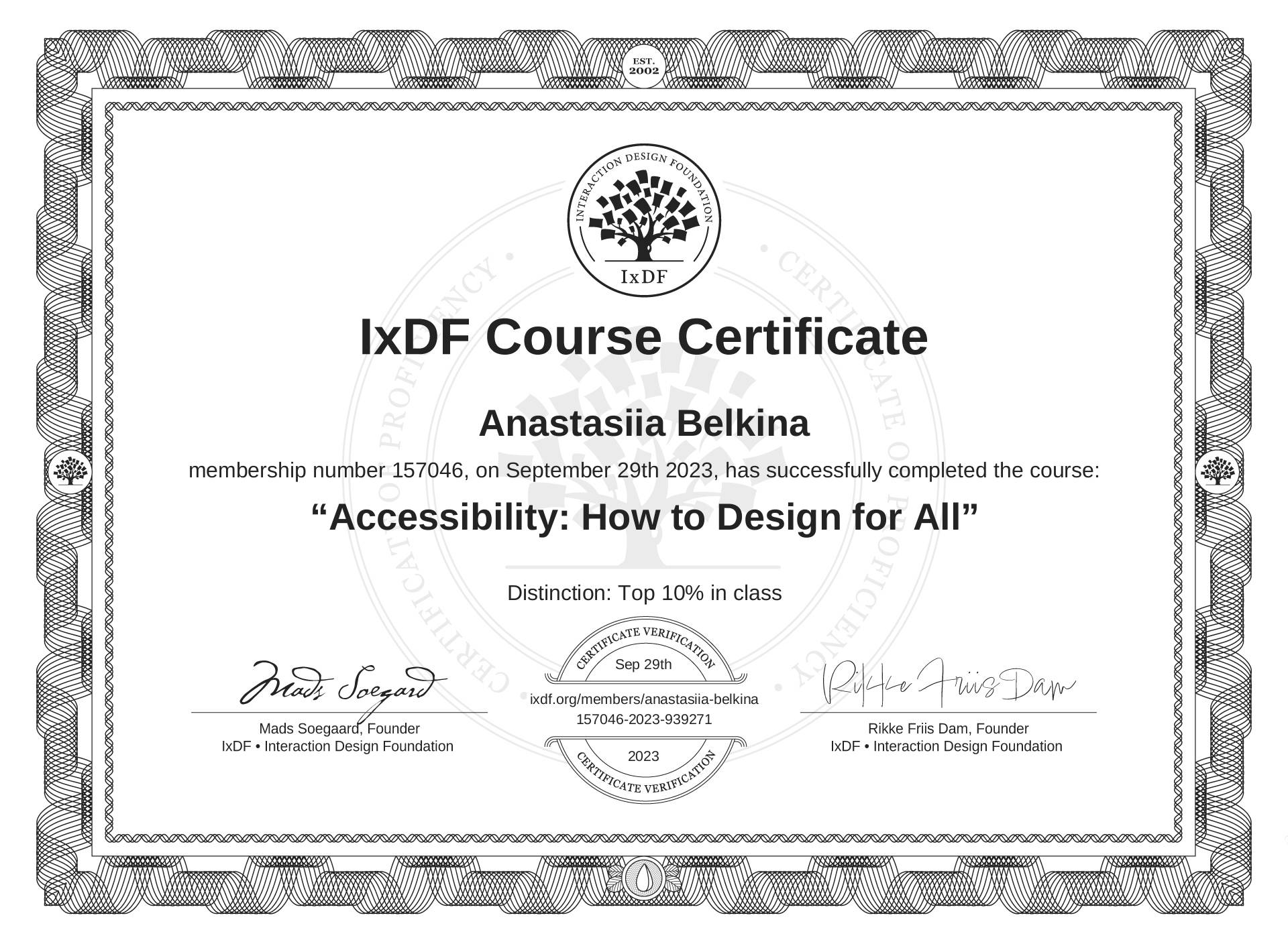 Anastasiia Belkina's IxDF Course Certificate: Accessibility: How to Design for All